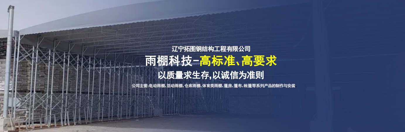 遼寧拓圖鋼結(jié)構(gòu)工程有限公司是一家專業(yè)從事推拉篷設(shè)計(jì)、制作、安裝、使用、維修的綜合性公司。公司主營(yíng):電動(dòng)雨棚、活動(dòng)雨棚、倉(cāng)庫(kù)雨棚、體育類雨棚、篷房、篷布、帳篷等系列產(chǎn)品的制作與安裝。 遼寧拓圖鋼結(jié)構(gòu)工程有限公司堅(jiān)持以市場(chǎng)為導(dǎo)向,以科技創(chuàng)新為動(dòng)力,以質(zhì)量求生存,以誠(chéng)信為準(zhǔn)則,倡導(dǎo)求實(shí)、進(jìn)取、創(chuàng)新的企業(yè)精神。“科學(xué)的管理、嚴(yán)謹(jǐn)?shù)脑O(shè)計(jì)、 的制作安裝、嚴(yán)格的質(zhì)量檢測(cè)、良好的后期服務(wù)成就企業(yè)的信譽(yù),為您提供優(yōu)質(zhì)服務(wù)。 遼寧拓圖鋼結(jié)構(gòu)工程有限公司傾力于開發(fā)應(yīng)用三維空間結(jié)構(gòu)與新材料的結(jié)合,將廣告藝術(shù)視覺表現(xiàn)形式與張力膜材科學(xué)的結(jié)合,推出多彩推拉蓬,依靠先進(jìn)的科學(xué)技術(shù),將推拉蓬建筑表現(xiàn)形式無限延伸,立志走在建筑科學(xué)的前沿,引導(dǎo)建筑時(shí)尚潮流,我們的目標(biāo)是使推拉蓬建筑在中國(guó)發(fā)展壯大。 遼寧拓圖鋼結(jié)構(gòu)工程有限公司憑著極強(qiáng)的事業(yè)熱情和豐富的專業(yè)經(jīng)驗(yàn)以“勤勉進(jìn)取、銳意創(chuàng)新、至誠(chéng)至信”的精神使公司得到迅速健康發(fā)展,業(yè)務(wù)范圍遍及全國(guó)。科學(xué)的管理、嚴(yán)謹(jǐn)?shù)脑O(shè)計(jì)、高標(biāo)準(zhǔn)的制作安裝流程,嚴(yán)格把控產(chǎn)品質(zhì)量,熱誠(chéng)的售后服務(wù)是企業(yè)競(jìng)爭(zhēng)力的源泉。 遼寧拓圖鋼結(jié)構(gòu)工程有限公司人愿以最誠(chéng)摯的態(tài)度,歡迎廣大客戶的蒞臨與溝通!愿為市場(chǎng)提供優(yōu)...